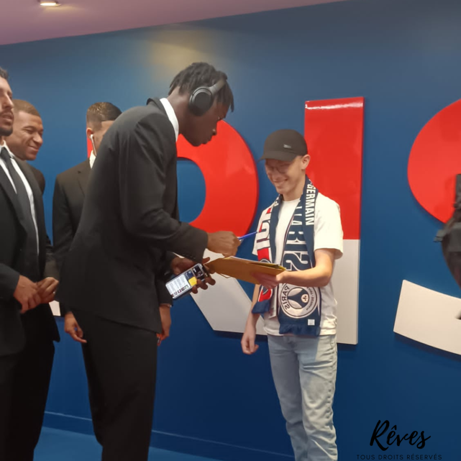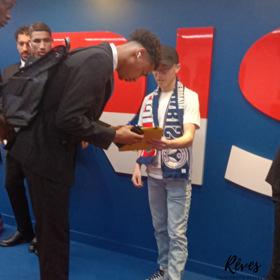 Le rêveur en croit à peine ses yeux, avoir les joueurs du PSG juste pour lui, et même si ce moment magique lui paraitra bien sûr trop court, il est sur un petit nuage.