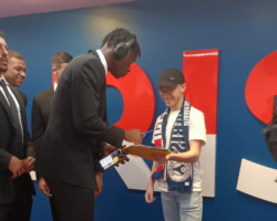 Ce soir, Eliott est un invité spécial du PSG. La soirée commence avec une petite visite de l’Atrium (la salle des trophées). Eliott nous confie que c’est incroyable de se retrouver avec tous les VIP du jour au milieu des coupes gagnées par l’équipe, dans cette immense salle décorée des maillots de toutes les stars qui ont joué au PSG et de photos d’actions exceptionnelles.