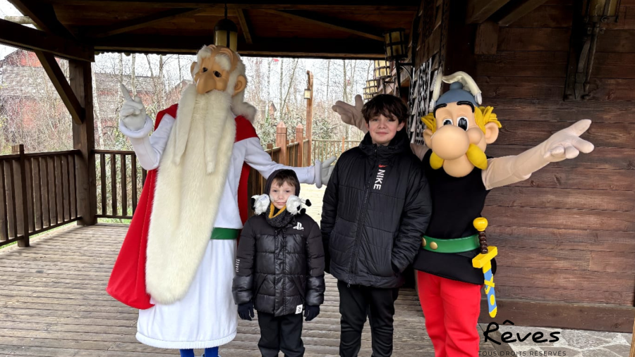 Dès son arrivée, ses yeux brillaient d’excitation. Il a eu la chance incroyable de rencontrer les célèbres Gaulois, notamment Astérix et Panoramix. Il n’en revenait pas de pouvoir les voir en vrai, prendre des photos avec eux et recevoir leurs sourires complices.