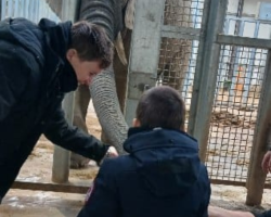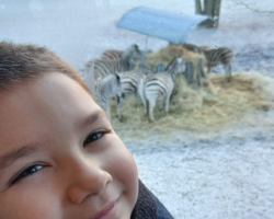 Le deuxième jour malgré la pluie et la neige, il a pu passer un moment unique avec les éléphants ! Il n’a pas décroché son sourire de la journée.