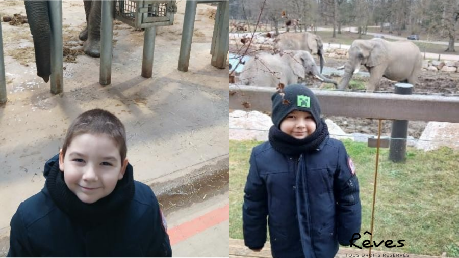 Merci beaucoup d’avoir donné le sourire à Emilio pendant ces 3 jours, pour moi c’est énorme !! Le deuxième jour malgré la pluie et la neige, il a pu passer un moment unique avec les éléphants ! Il n’a pas décroché son sourire de la journée.