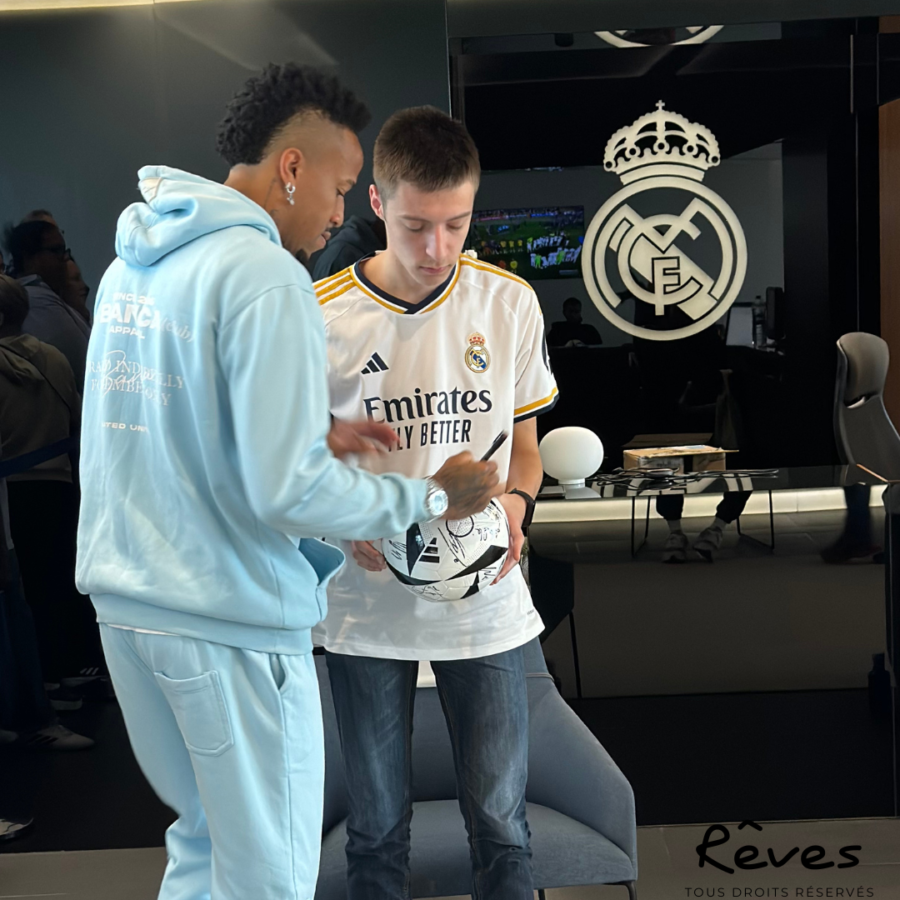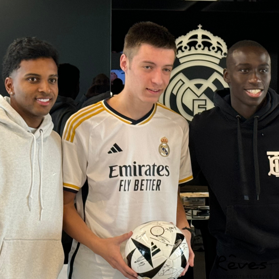 Le troisième jour commence à l’aube avec une surprise exceptionnelle : une visite du centre d’entraînement du Real Madrid. Les installations, d’un gigantisme impressionnant, abritent terrains, piscines, salles de massage et même un cinéma. Les garçons, parmi neuf jeunes privilégiés venus d’Europe, rencontrent l’ensemble de l’équipe. Chaque joueur signe leur ballon et échange quelques mots. Mbappé, en particulier, marque les esprits en discutant avec Exaucé, partageant leur lien avec la Normandie. Ce moment unique est immortalisé par un photographe officiel.