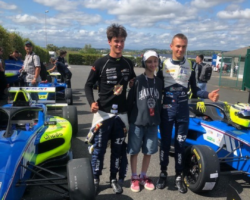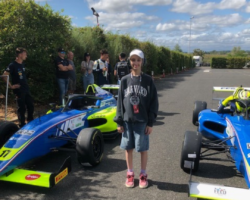 Arrive ensuite la rencontre avec les jeunes pilotes de F4, qui posent volontiers avec Kenza et complètent son cahier. Le sourire ne quitte pas son visage, elle ne veut rien manquer des courses, des rencontres, et des expériences… le timing est serré.