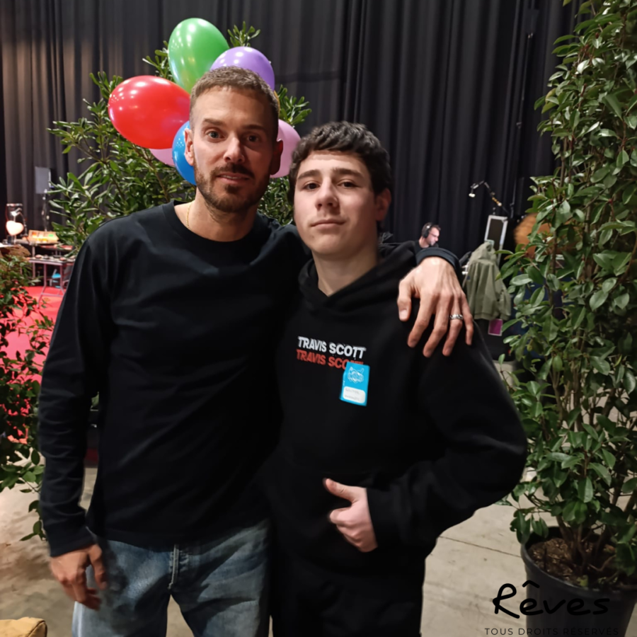 Matthéo est reçu près des loges des différents artistes 2 heures avant le spectacle. Un goûter est offert ainsi qu’une pochette cadeau dont le tee-shirt des Enfoirés.