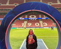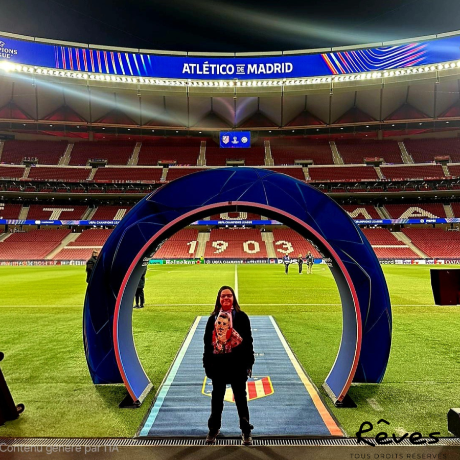Grâce à l’UEFA, elle a bénéficié d’un accueil VIP exceptionnel : visite guidée du stade et du terrain, cocktail au Champions Club… Ophélie s’est transformée en véritable supportrice de los Colchoneros.